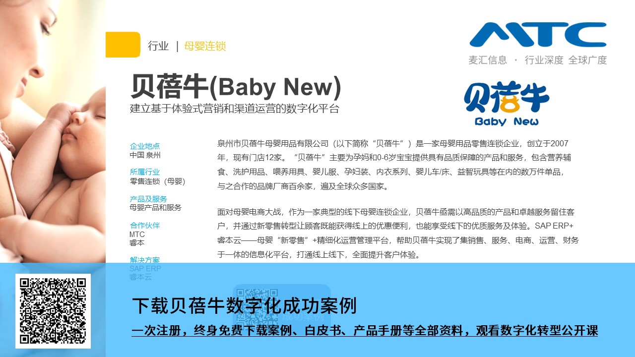 在高度竞争的母婴市场中,贝蓓牛必须快速转型升级才能获得持续的发展和竞争力,我们愿借助 SAP、MTC和爸爸我要丰富的行业管理和信息化经验不断优化和创新,让贝蓓牛在未来的十年成为母婴连锁数字化转型的领导者。