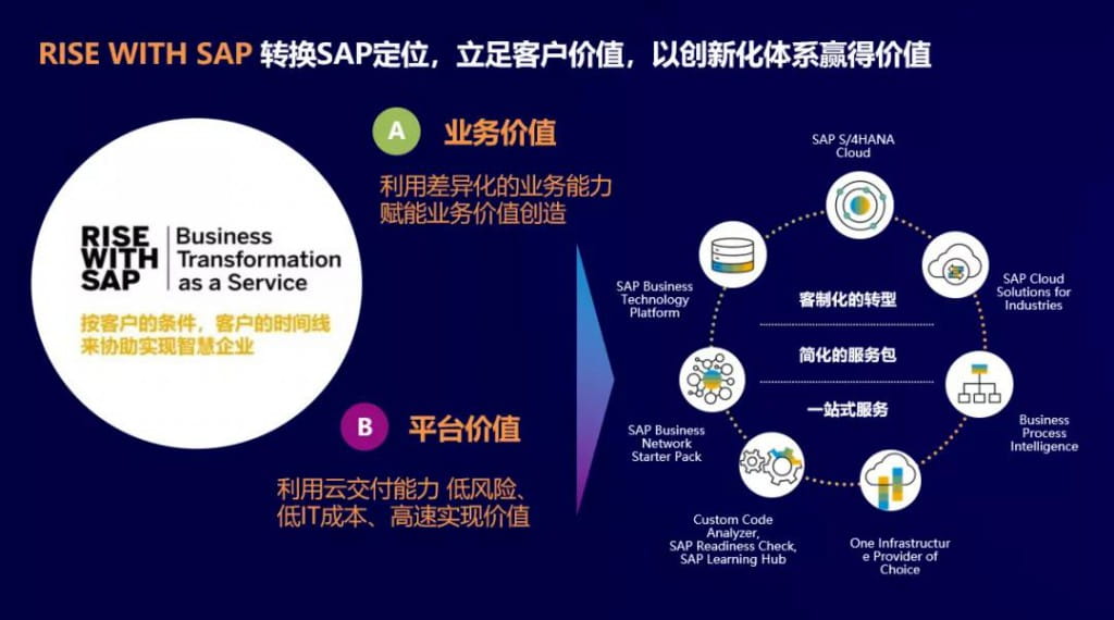 行业赛道呈现出更加丰富多彩的热点轮换,行业在疫情后逆转,创新突破中蓄势,积累中等待嬗变。企业之间正在从技术、产品和供应链的竞争中逐步演化为平台化的生态体系竞争。因此,数字经济时代下,SAP 正在以 RISE 模式支持标杆企业多元化、平台型发展。