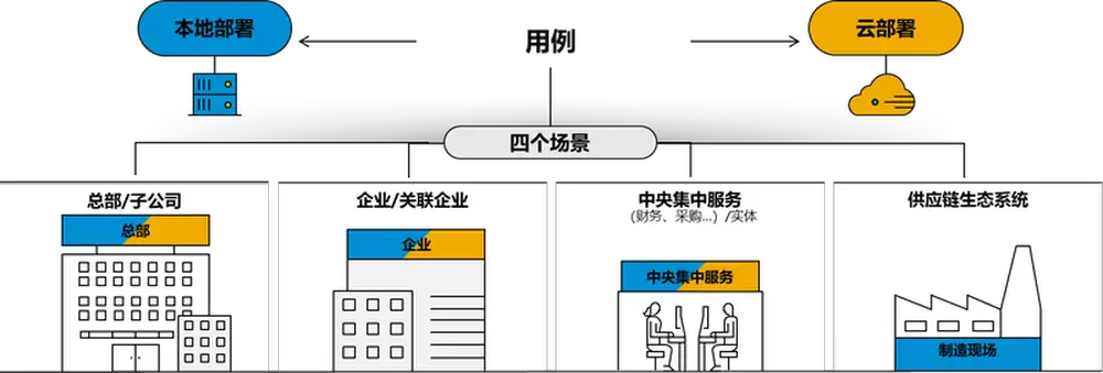 跨国企业可选择双层ERP架构,即海外子公司独立部署SAP系统,并与总部系统对接。一方面,满足本地化需求,并确保合规,另一方面,业务和财务合并数据与海外总部SAP系统同步,从而实现集团统一管控,并降低成本和复杂性,快速实施。