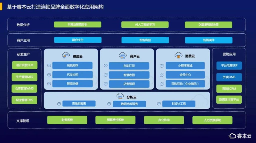 关于本轮融资,杨雄表示:麦汇信息和光云科技作为睿本云的战略投资方,将分别在后端业务财务一体化领域和第三方平台电商与睿本云聚焦的连锁新商业运营解决方案构成优势互补和合作生态,联合起来可为连锁消费品牌提供完整的端到端数字化解决方案。